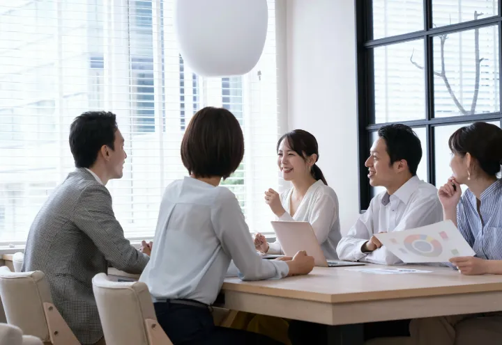 社会の変化に柔軟に対応し持続的な成長を実現するために、月一回、定期的に経営会議を実施。お客様や従業員にとってより良い企業運営が実現できるように、現場の意見を積極的に取り入れることを大切にしています。
